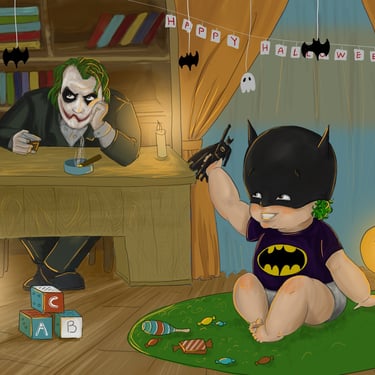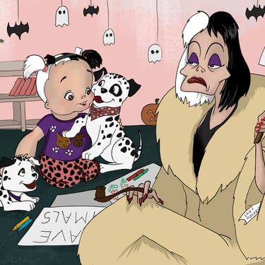 A blend of murals, canvas, and children's illustrations.